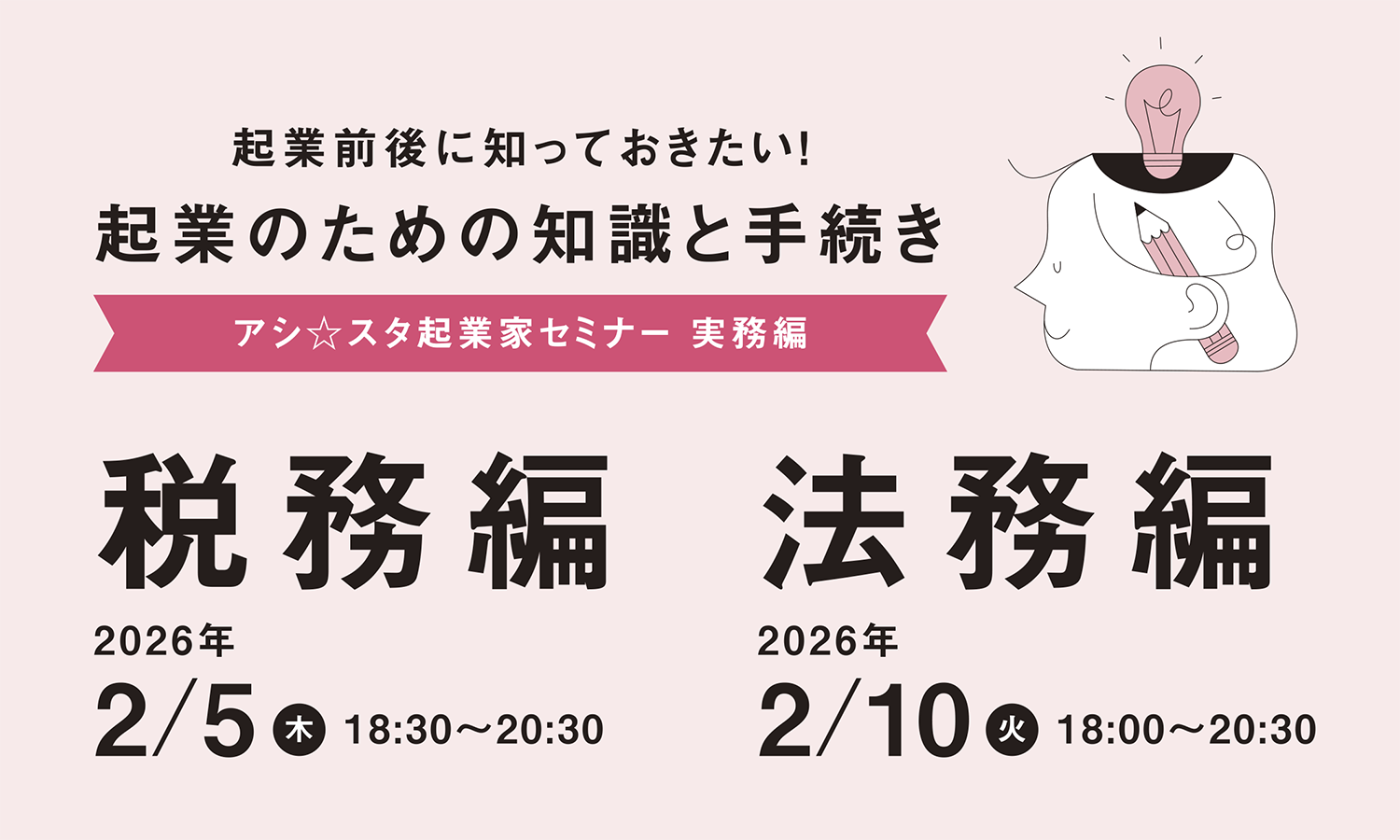 【2/5・2/10開催】起業家セミナー実務編『起業前後に知っておきたい!起業のための知識と手続き』