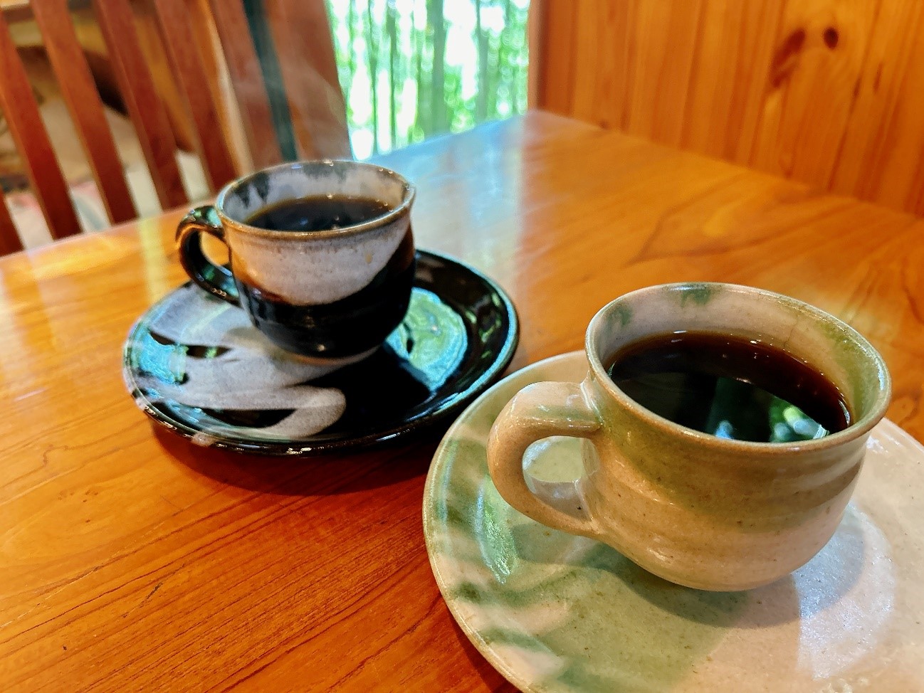 定番から季節限定商品まで、常時20種類程用意している「珈琲まめ坊」のラインナップ。地元陶芸作家さんの作品など青木さんセレクトの器でいただくコーヒーと、季節ごとに移りゆく表情を見せてくれる窓からの景色をぜひ楽しんでみてください。