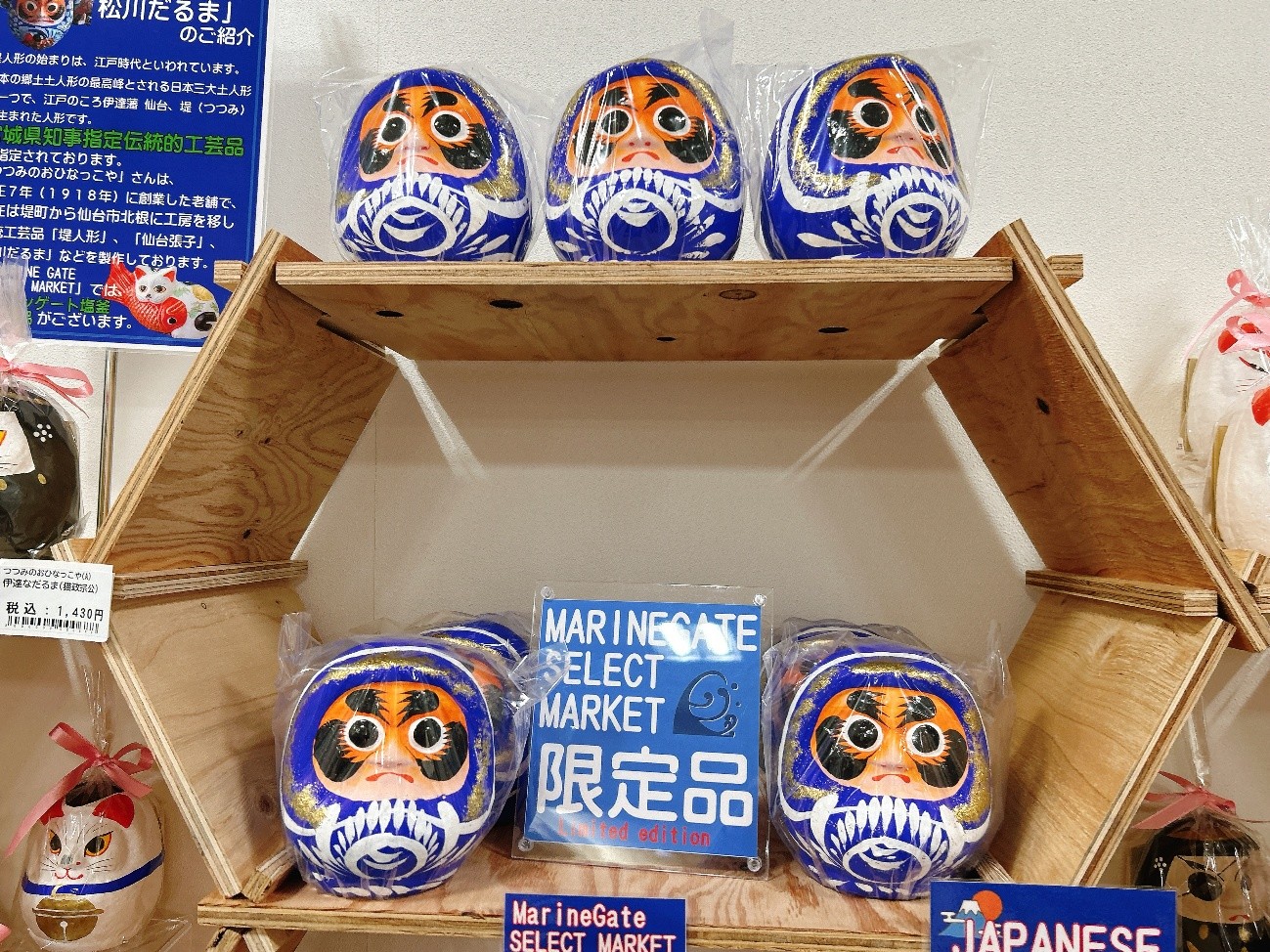 さらに、仙台の伝統工芸品である「松川だるま」も「つつみのおひなっこや」で特別につくってもらっているという、「Marine Gate SELECT MARKET」だけの限定品も人気なのだとか。