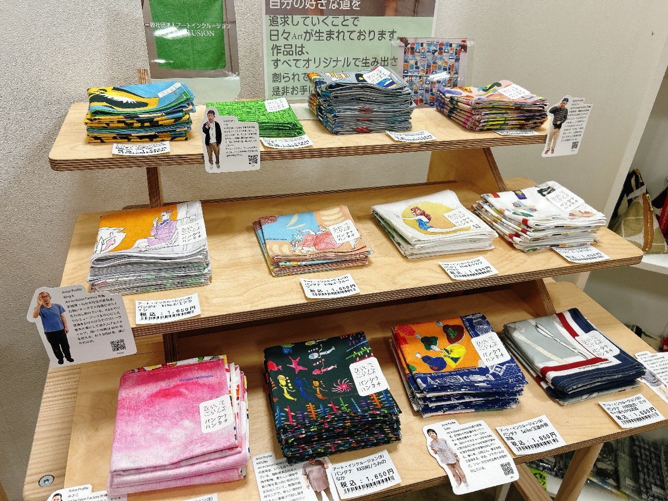 「お店を持たない事業者さんにとってのアンテナショップ的なこともコンセプトとしてありました。一般社団法人アート・インクルージョンさんのハンカチはとても独創的で人気がありますよ」
