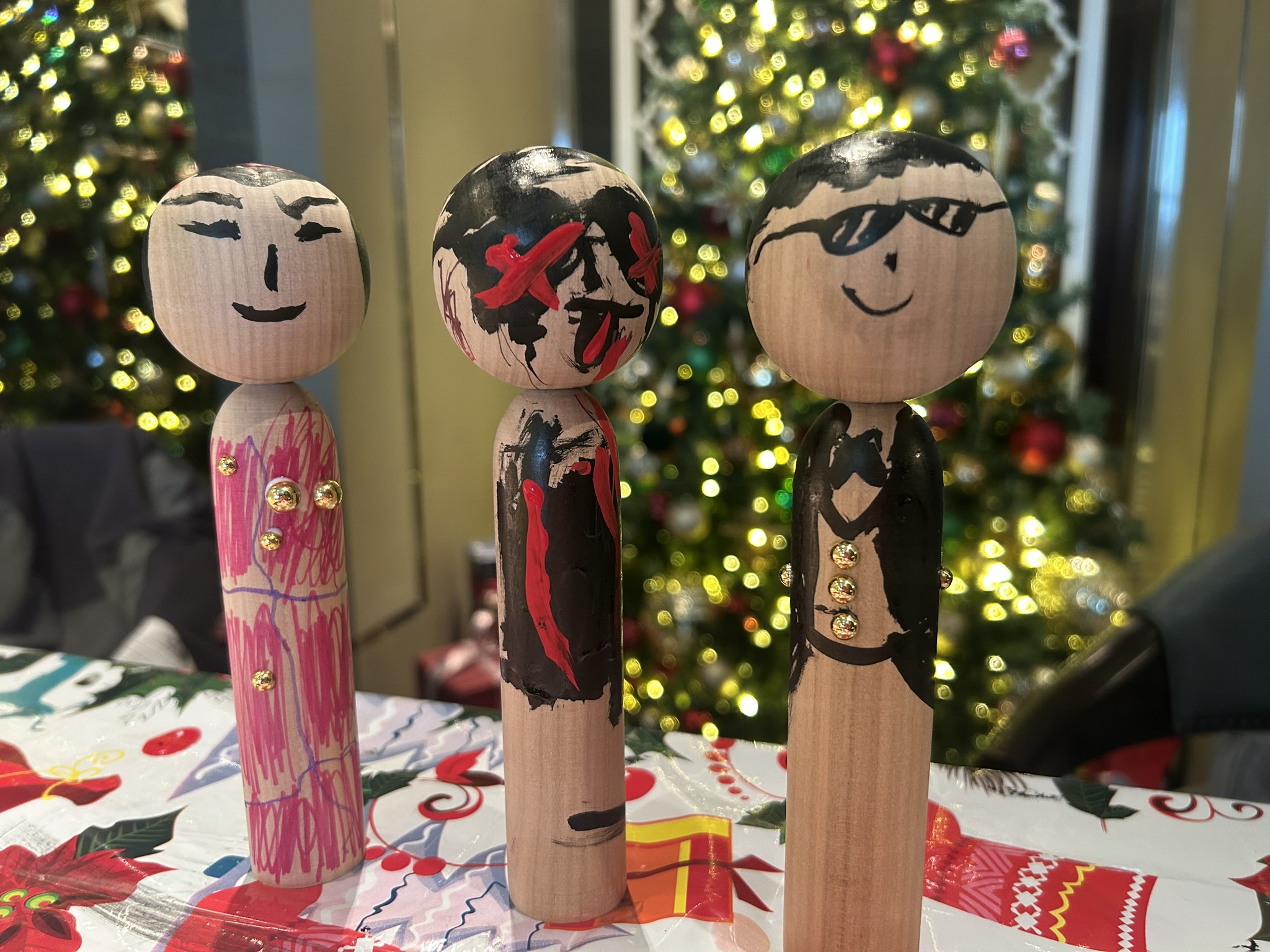 シンガポールから来たSophieちゃんはクリスマスツリーをピック。クリスマスらしくゴールドを多めにあしらい、ジェムパーツもまとった豪華なこけしツリーを完成させ「楽しかった」と喜んでくれました。