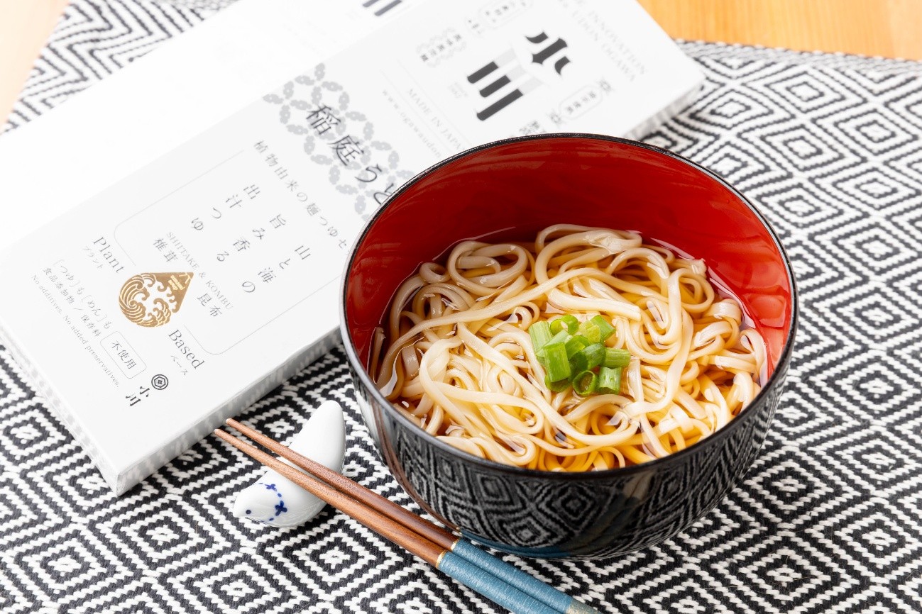 日本国内はもとより、海外展開にも力を入れており、ヨーロッパ、北米、アジアなど世界各国への輸出事業を積極的に推進。その中で生まれたのが、「プラントベース(昆布&椎茸)つゆ付き稲庭うどん」です。