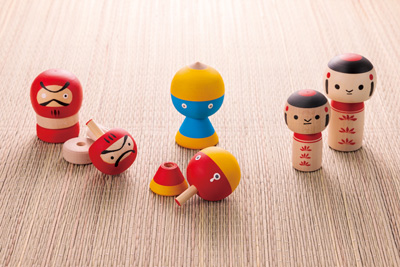回して、飾って楽しめるデザイン。独楽を回して楽しむだけでなく、台座と組み合わせると飾って楽しむこともできる新しい独楽です。