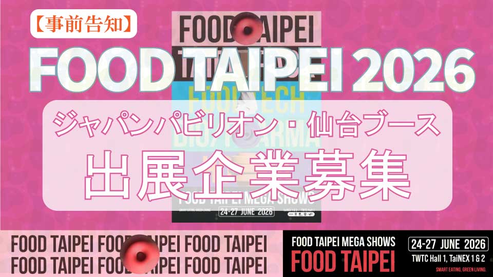 食品に関する台湾最大級の展示会である「FOOD TAIPEI 2026」ジャパンパビリオン(運営:ジェトロ)に申請予定の仙台ブースに出展を希望する企業を募集します。