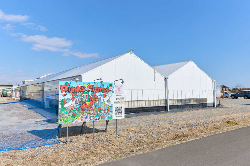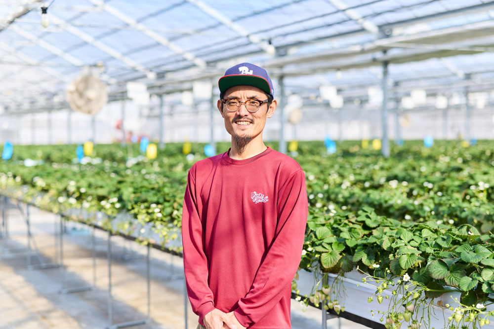 「震災前までここは田んぼでした。津波で土地も設備も壊滅的な被害を受けて、それきりの状態がしばらく続いていました」真冬でも春のように暖かいイチゴハウスでそう語るのは株式会社Punks Farmer会長の早坂洋平さん。「そんな中、その後の自分たちの生き方を変えることになるミガキイチゴという高品質なブランドイチゴの存在を知りました。そして、それを栽培する山元町の農業生産法人GRAが就農を支援していることを知り、2020年7月に妻がGRAの2年間の新規就農プログラム『ミガキイチゴアカデミー』に参加しました。その修了のタイミングで私が会社を辞めて、イチゴ農場を本格的に始動したのです」