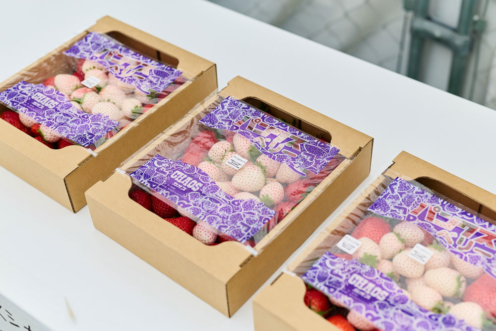 現在、パンクスベリーの商品名で出荷しているのは、とちおとめ、さちのか、やよいひめ、黒いイチゴと呼ばれる真紅の美鈴、そして白イチゴのパールホワイトとゆきぼたんの6品種で、赤・黒・白の3色のイチゴの詰め合わせパックがとても人気です。見た目の華やかさに加えて、味わいが明らかに違う高品質なイチゴを手軽に楽しめるところが好評なのですが、シミができたものは出荷できませんから、すると白イチゴの収量が減って、人気の詰め合わせパックの出荷量も減ってしまいます。取引先のなかには商品の安定供給を重視するところもあるので、白イチゴのシミは作業効率と収量の問題だけでなく、ビジネス上の信頼関係に影響する問題でもあったのです。