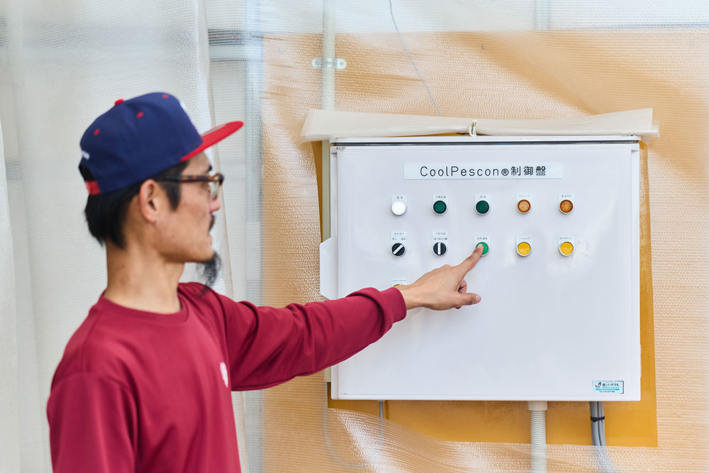 栄養剤の葉面散布と昇温抑制、加湿を自動で行う機器「Cool Pescon」を導入しました。全国的に実績のあるシステムで、ずっと注目していたんです。ただ、高額なため、補助金の活用を前提に導入を検討していたのですが、当農場が補助対象としてマッチするものがどこにもなくて途方に暮れていました。そんなとき、ネットを検索したら、仙台市産業振興事業団が実施するこの補助金とたまたま出会うことができたんです。補助金申請に必須な事前相談の締切直前だったのですが、作業負担を軽減したい、白イチゴのシミもなんとかしたい……と、藁にもすがる思いで滑り込みました。結果、申請手続きも間にあって無事採択され、念願のCool Pesconを導入できました。